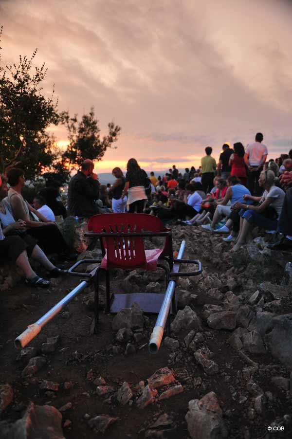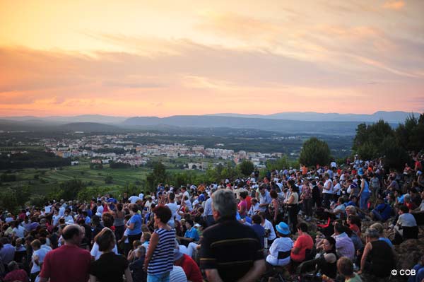 A aparição esta noite na “Montanha das Aparições” foi em torno de 23:00 h (Hora Medjugorje) . Dezenas de milhares de pessoas estiveram presentes. Muitos estavam na montanha até 5 horas antes, aguardando na expectativa para a aparição de Nossa Senhora durante o grupo de oração de Ivan. Enquanto os terços estavam sendo recitados, trovões podiam ser ouvidos, e relâmpagos eram vistos no céu distante. Foi uma bela noite para estar com Nossa Senhora na montanha. Depois de dois Terços recitados, Nossa Senhora veio em torno de 23:00 h. A aparição durou cerca de 13 minutos. Abaixo segue a descrição de Ivan de hoje à noite sobre a aparição de Nossa Senhora: